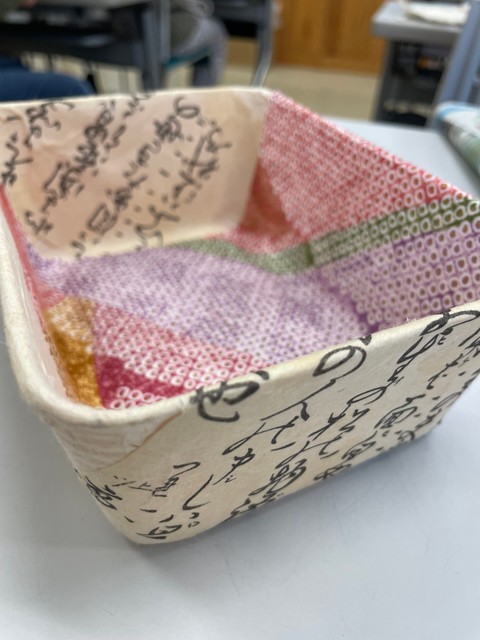 柿渋を使った小物入れの作り方を教えてもらいました。
