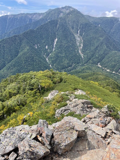 仙丈ケ岳を見ながら岩場の下り